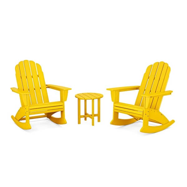 Vineyard Curveback Adirondack Rocking Chair Lemon 3-Piece HDPE Plastic Patio Conversation Set