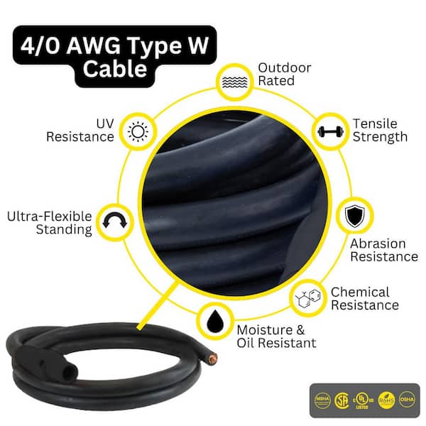 10ft 4/0 AWG Type W 400 Amp 600V Black Series 16 Female Camlock to 1/2in Single Hole Lug Generator Extension Cord