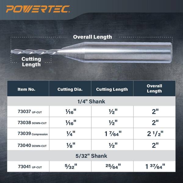 1/16 in. x 1/4 in. Shank Down Cut Tungsten Carbide Spiral Router Bit (5-Pack)