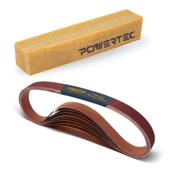 1 in. x 30 in. Aluminum Oxide Sanding Belts 60/80/120/180/240/400 Grit Assortment (24PK) with Abrasive Cleaning Stick