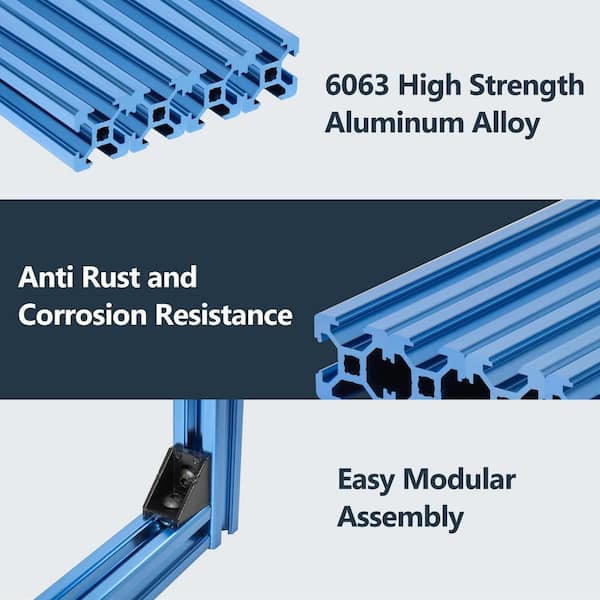 10-Piece 48 in. 2020 T-Slot Aluminum Extrusion Profile Linear Rail, Anodized Blue, European Standard 20mm x 20mm