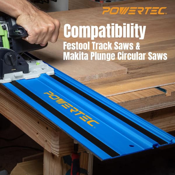 110 in. Track Saw Guide Rail with Protective Bag for Makita/Festool Track Saws, Incl. 2x55 in. Guide Rails, 2 Connectors