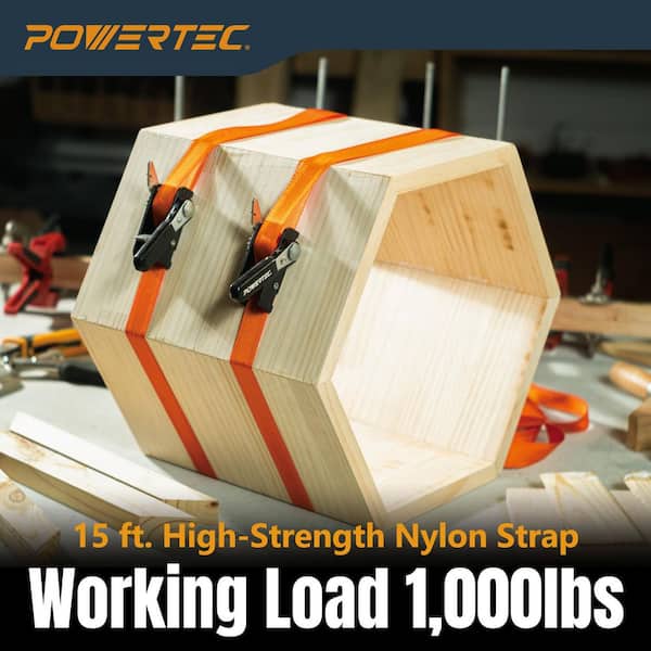15 ft. Adjustable Band Clamp for Woodworking-Strap Clamp with Ratcheting Handle, 1000 lbs. Capacity (2-Pack)