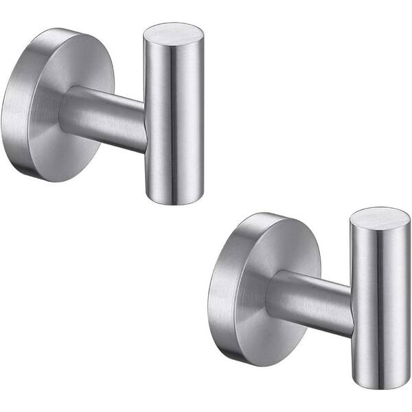 2-Piece Stainless Steel J-Hook Robe/Towel Hook with Round Mount Post in Brushed Nickel