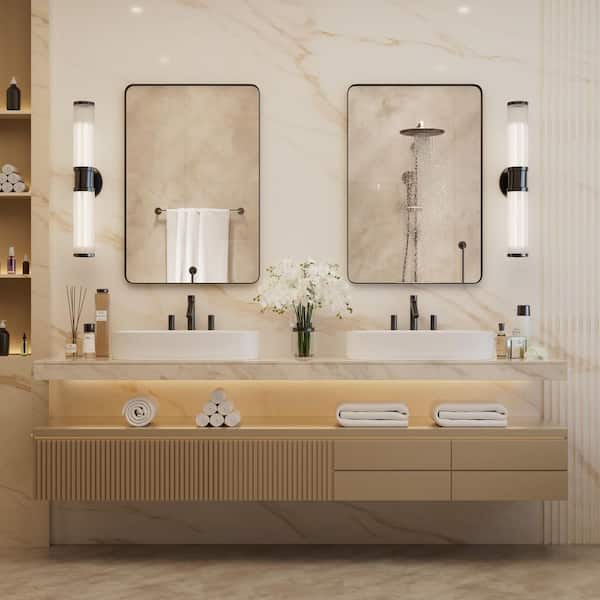 22 in. W x 30 in. H Medium Modern Rectangle Stainless Steel Wall Mirror Bathroom Mirror Vanity Mirror in Brushed Black