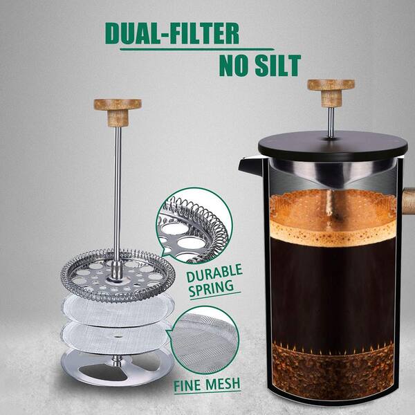 4 Cups 34 Oz. White Stainless Steel French Press Coffee Maker with Wood Handle