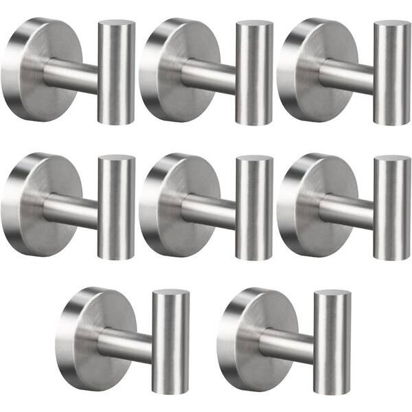 8-Piece Stainless Steel J-Hook Robe/Towel Hook with Round Mount Post in Brushed Nickel