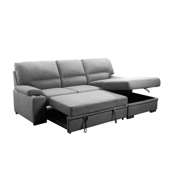 37 in. Wide 2-Piece Oliver Sectional Storage Fabric Sofa Foam Bed in Light Grey