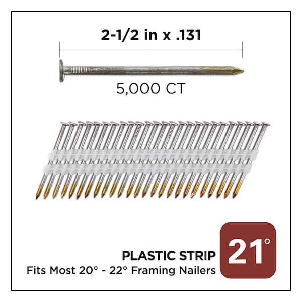 2-1/2 in. x 0.131 21-Degree Bright Finish Smooth Shank Plastic Strip Framing Nails (5000 -Per Box)