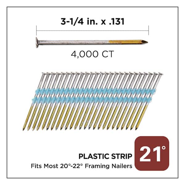 3-1/4 in. x 0.131-Gauge 21° Bright Finish Smooth Shank Plastic Strip Framing Nails (4000 per Box)
