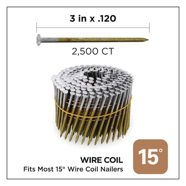 3 in. x 0.120 15-Degree Hot Dipped Galvanized Ring Shank Wire Coil Framing Nails (2500 -Per Box)