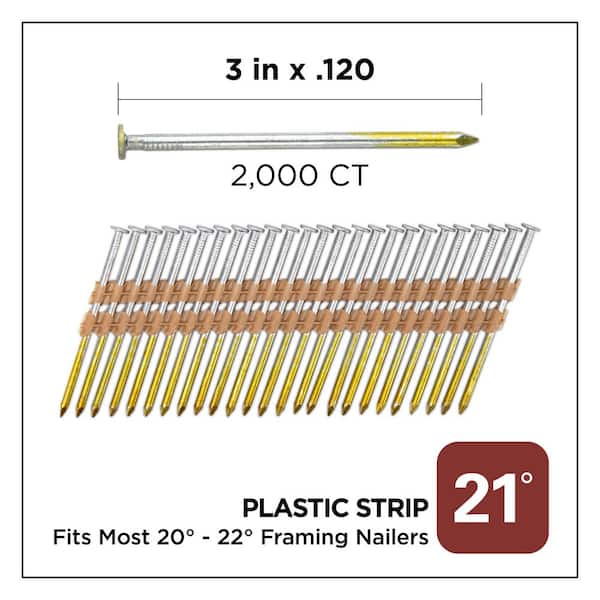 3 in. x 0.120 21-Degree Hot Dipped Galvanized Smooth Shank Plastic Strip Framing Nails (2000 -Per Box)