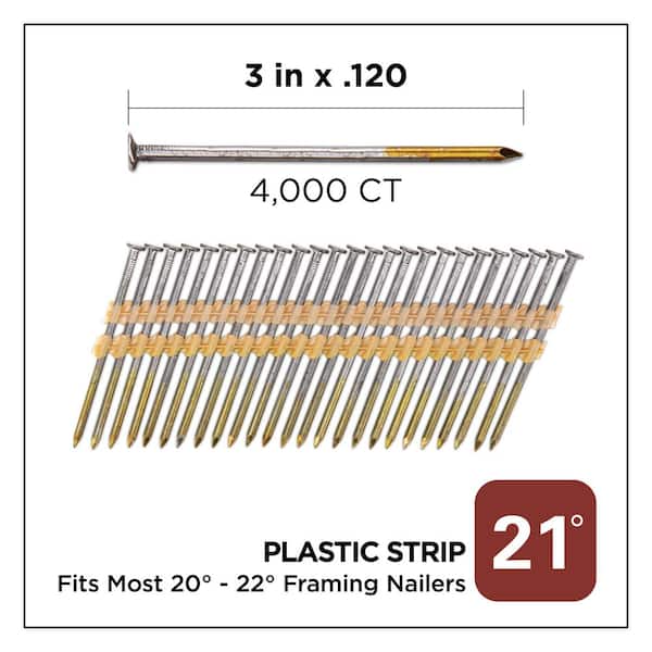 3 in. x 0.120-Gauge 21° Bright Finish Smooth Shank Plastic Strip Framing Nails (4000 per Box)
