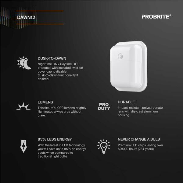 Slim-Profile 75-Watt Equivalent White Integrated Outdoor LED Wall Pack, 1000 Lumens, Dusk to Dawn Outdoor Security Light