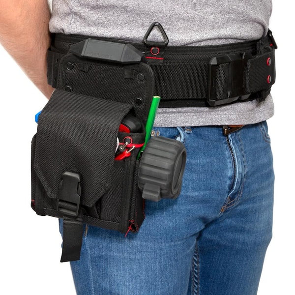 • 5 exterior pockets one with a top mounted steel tape measure clip