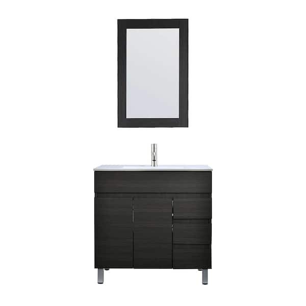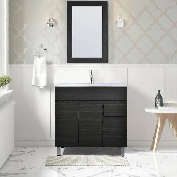 32 in. W x 18 in. D x 32 in. H Single Sink Bath Vanity in Black with White Ceramic Top and Mirror