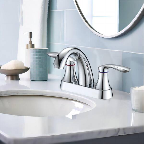 4 in. Centerset Double Handle High Arc Bathroom Faucet with Drain Kit Included in Polished Chrome
