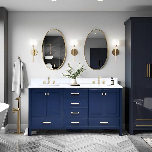 Enliven 72 in. Double Sink Freestanding Navy Blue Bath Vanity with White Engineered Stone Top