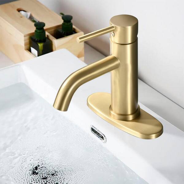 Single Handle Single Hole Bathroom Faucet with Deckplate Included in Brushed Gold
