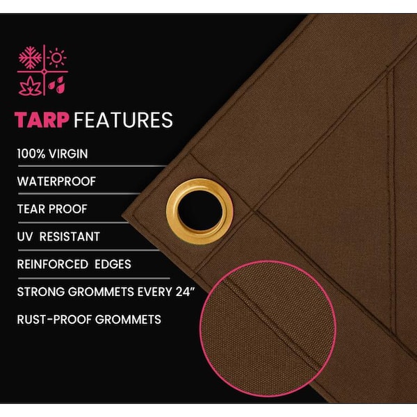 Extreme Heavy Duty 20 OZ Water Resistant Canvas Tarp, UV Resistant Tarpaulin Cover Brown 12 ft. x 20 ft.