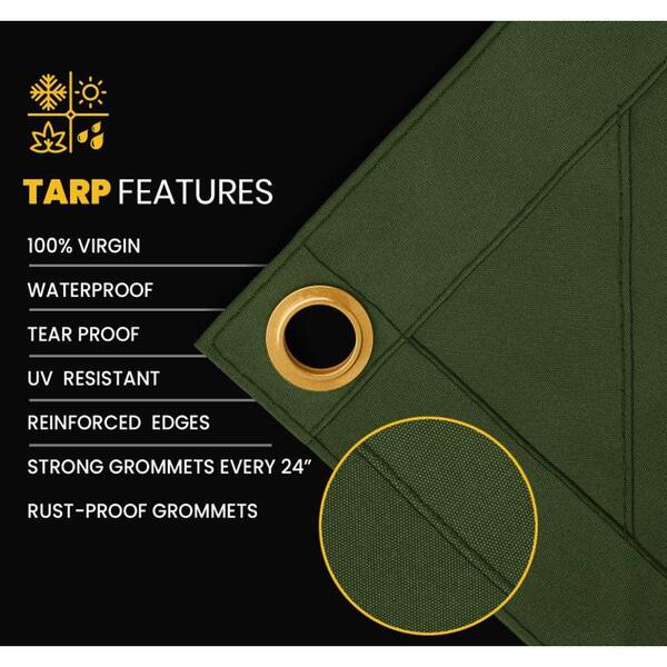Heavy Duty 14 OZ Water Resistant Canvas Tarp, UV Resistant Tarpaulin Cover Olive 30 ft. x 30 ft.