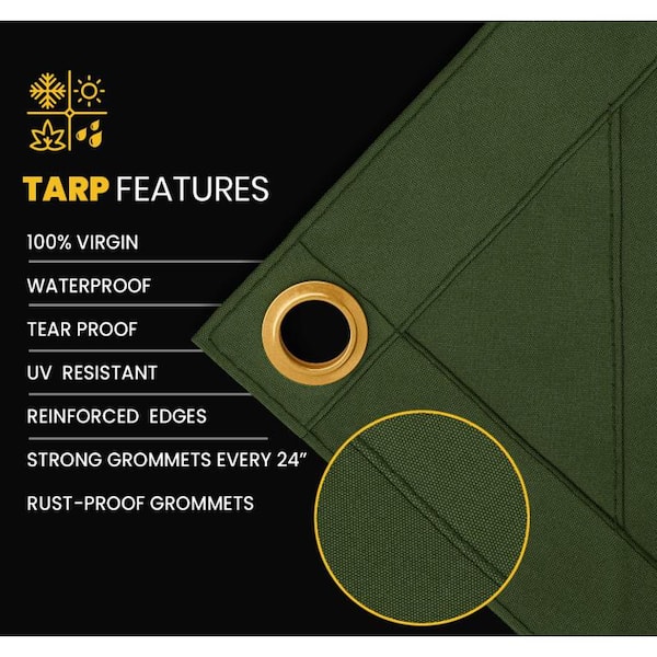 Heavy Duty 14 OZ Water Resistant Canvas Tarp, UV Resistant Tarpaulin Cover Olive 7X9