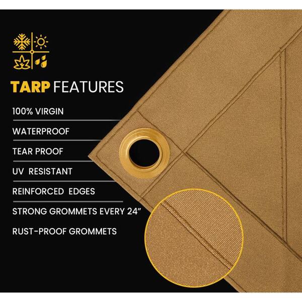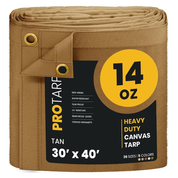 Heavy Duty 14 OZ Water Resistant Canvas Tarp, UV Resistant Tarpaulin Cover Tan 30X40