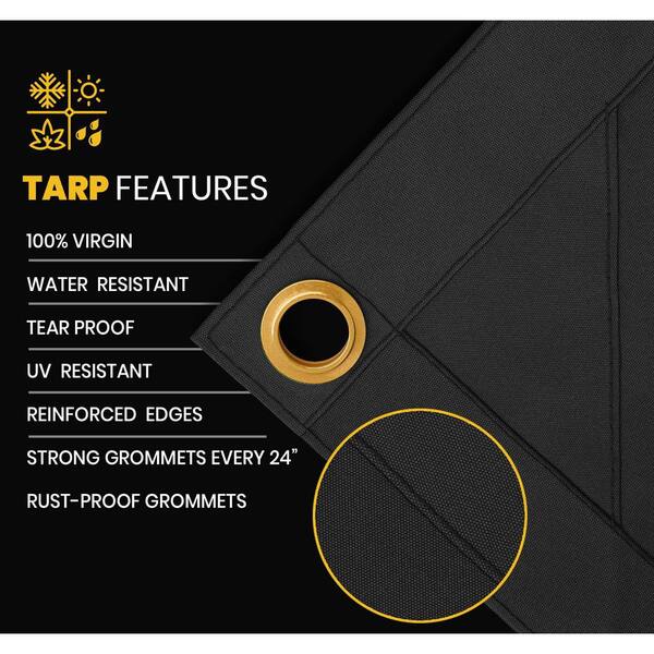 Heavy Duty 14 oz. Water Resistant Canvas Tarp, UV Resistant Tarpaulin Cover Grey 10 ft. x 10 ft.