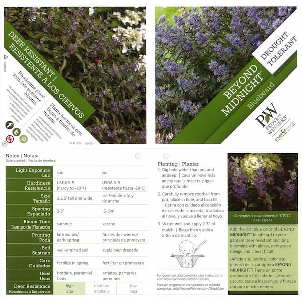 1 Gal. Beyond Midnight Bluebeard (Caryopteris) Live Shrub, Blue Flowers and Glossy Green Foliage