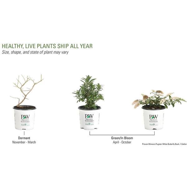1 Gal. Pugster White Butterfly Bush (Buddleia) Live Shrub, White Flowers