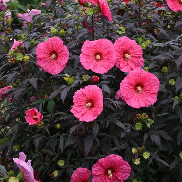 2 Gal. Summerific Evening Rose Perennial Hibiscus (Rose Mallow) Live Plant Hot Pink Flowers, Near black foliage