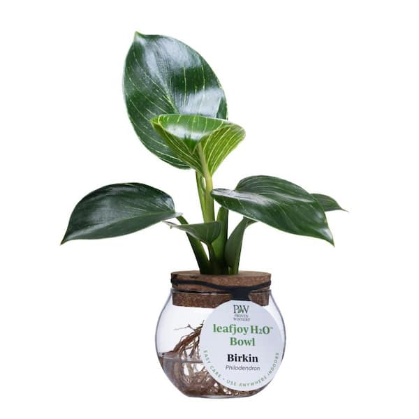 3 in. leafjoy H2O Bowl, Prismacolor 'Birkin' Hybrid (Philodendron), Live Plant, Glass Vase (1-Pack)