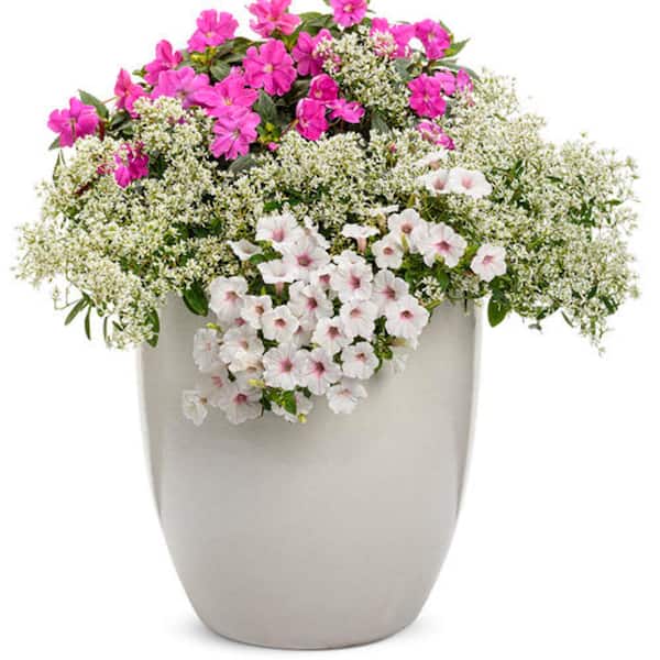 4.25 in. Grande Supertunia Vista Silverberry (Petunia) Live Plants, White & Pink Flowers white w/lavender vein (4-Pack)