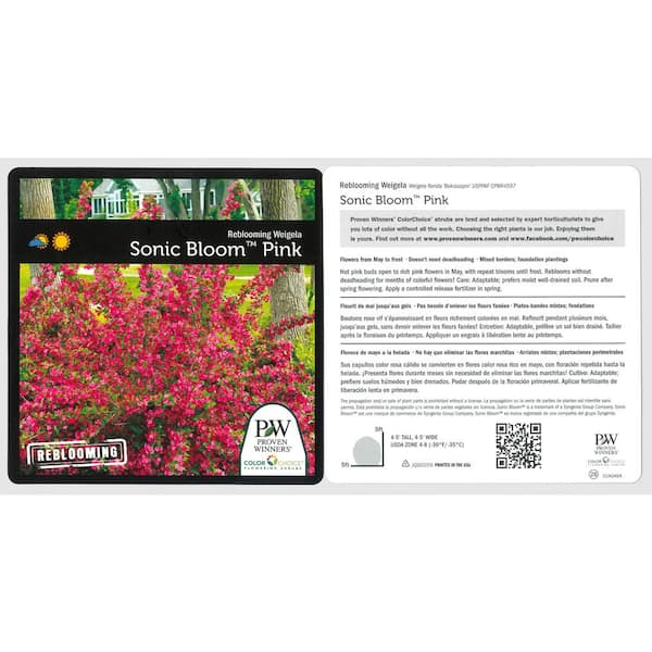 4.5 in. qt. Sonic Bloom Pink Reblooming Weigela (Florida) Live Shrub, Pink Flowers