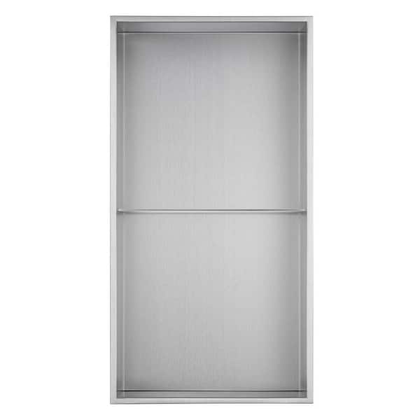 13 in. W x 24.8 in. H x 4 in. D Stainless Steel Double Shelf Recessed Shower Niche in Brushed Stainless Steel