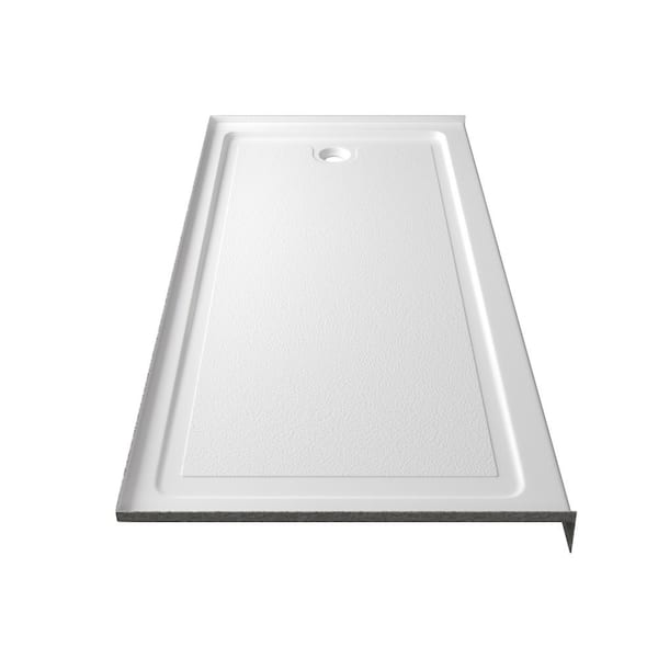 60 in. L x 32 in. W Alcove Shower Pan Base with Front Drain in White Acrylic
