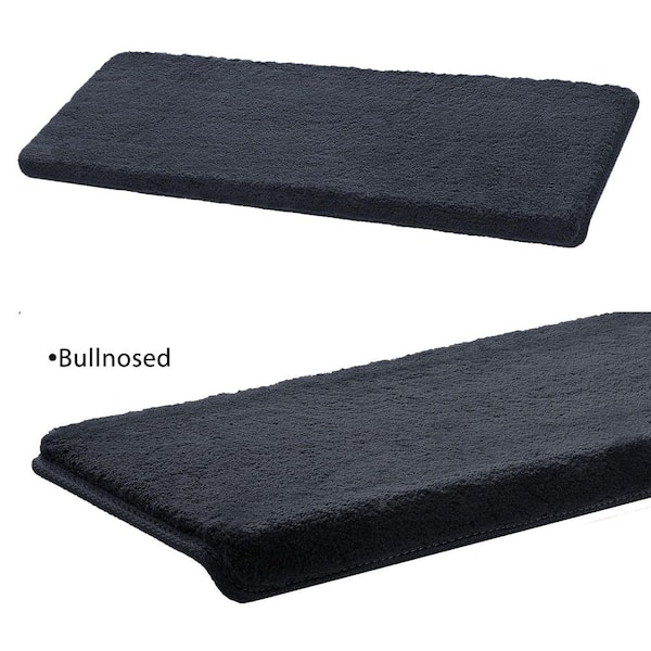 Dark Gray 9.5 in. x 30 in. x 1.2 in. Plush Bullnose Indoor Stair Tread Cover Carpet Self Adhensive Mat (Set of 12)