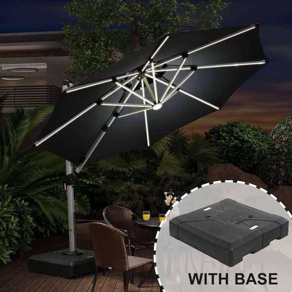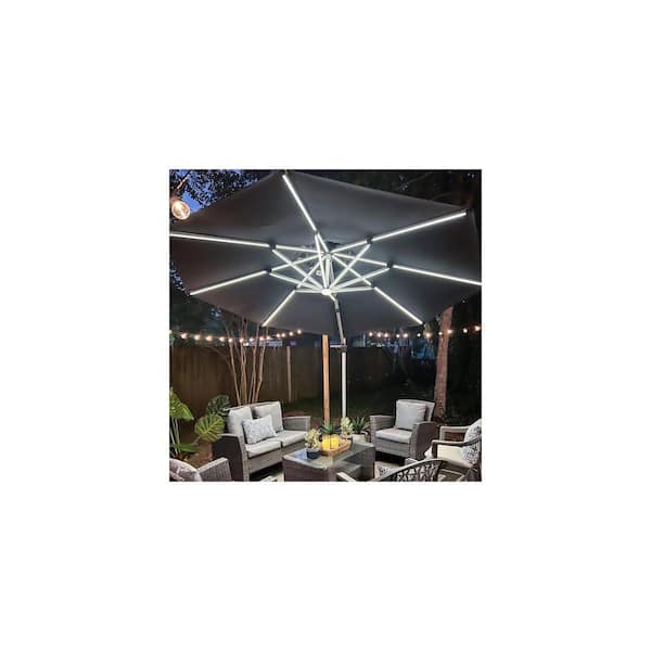10 ft. Octagon Aluminum Solar Powered LED Patio Cantilever Offset Umbrella with Stand, Gray