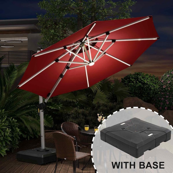 10 ft. Octagon Aluminum Solar Powered LED Patio Cantilever Offset Umbrella with Stand, Terra