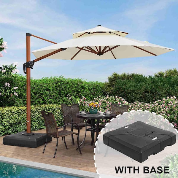 10 ft. Octagon High-Quality Wood Pattern Aluminum Cantilever Patio Umbrella with Stand, Cream