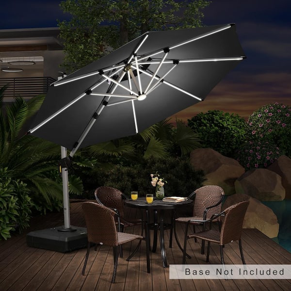 10 ft. Octagon Solar Powered LED Patio Umbrella Outdoor Round Large Cantilever Umbrella Heavy-Duty Sun Umbrella in Black