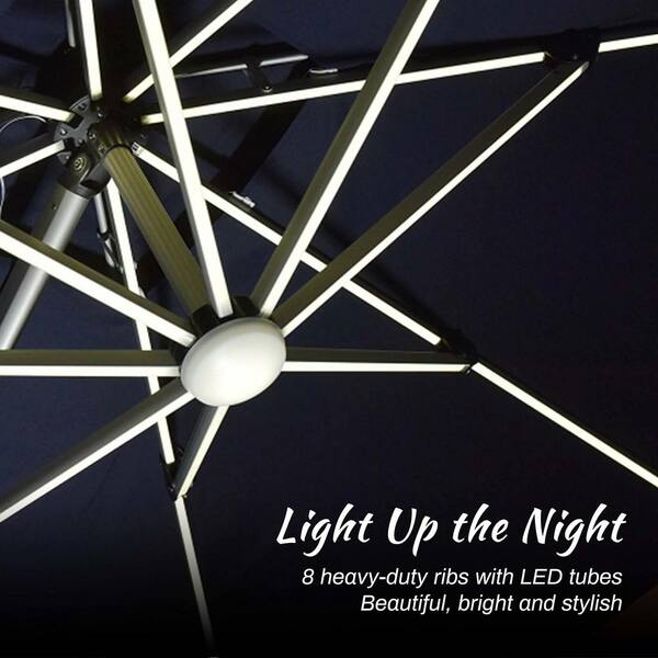10 ft. Octagon Solar powered LED Patio Umbrella Outdoor Round Large Cantilever Umbrella Heavy Duty Sun Umbrella in Gray