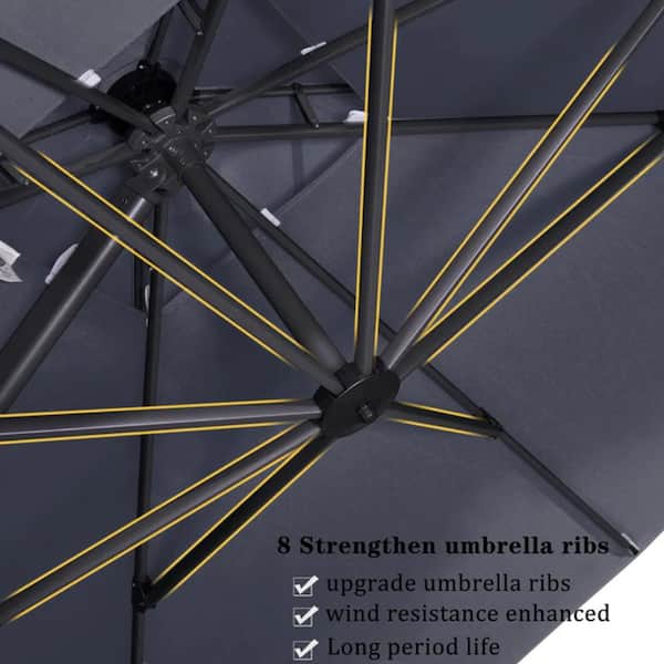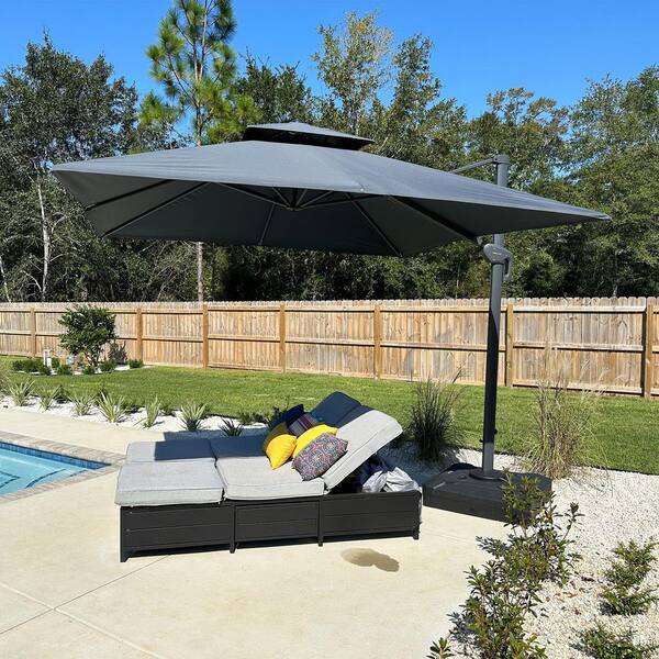 10 ft. Square 2-Tier Aluminum Cantilever 360-Degree Rotation Patio Umbrella with Base in Ground, Gray