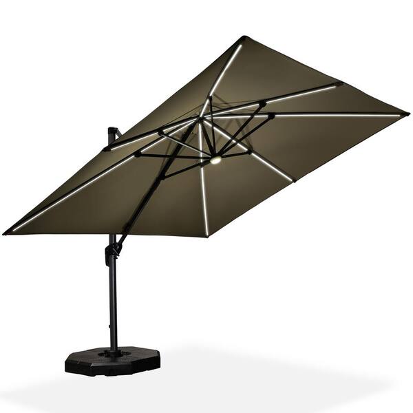 10 ft. Square Aluminum Cantilever Solar Powered LED Offset 360° Rotation Umbrella with Wheels Base, Beige