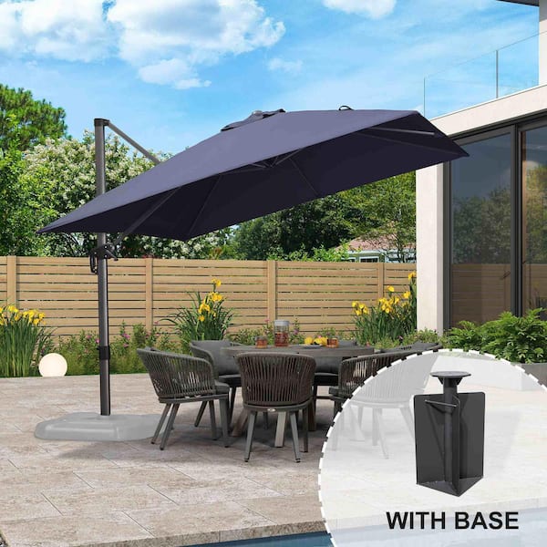 10 ft. Square Aluminum Outdoor Patio Cantilever Umbrella 360-Degree Rotation Umbrella with Base in Ground, Navy Blue