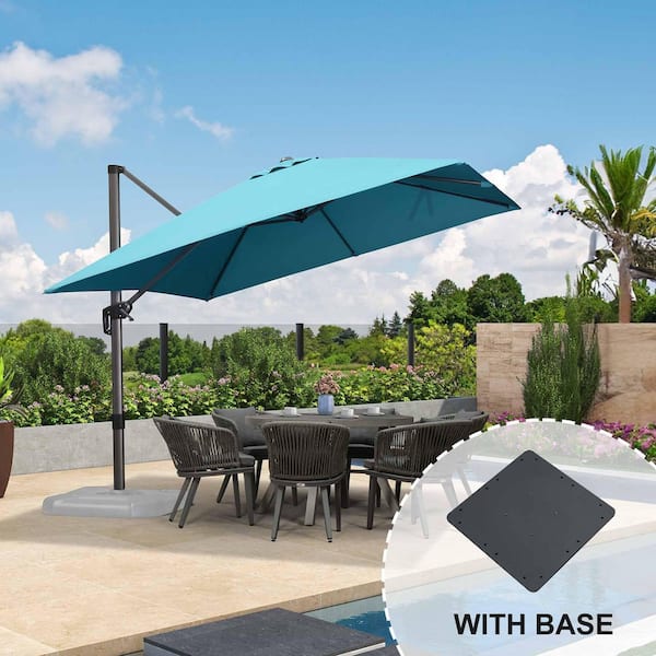 10 ft. Square Aluminum Patio Cantilever Umbrella Offset 360-Degree Rotation Umbrella with Base Plate, Turquoise Blue