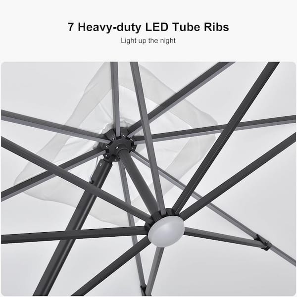 10 ft. Square Cantilever Patio Umbrella Solar Powered LED Aluminum Offset 360° Rotation Umbrella with Base, White