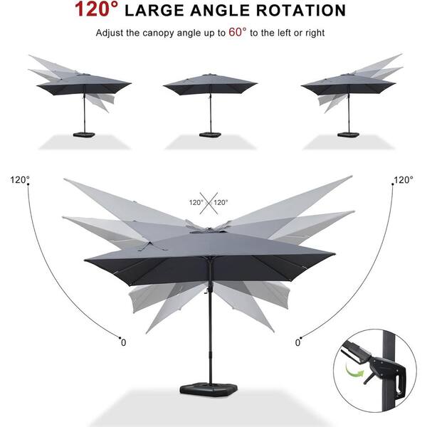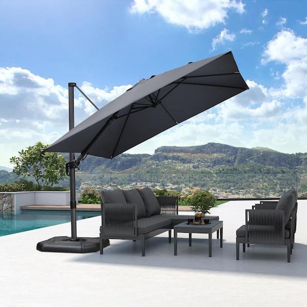 10 ft. Square Cantilever Patio Umbrella Swivel Aluminum Offset 360° Rotation Umbrella with Base, Light Gray