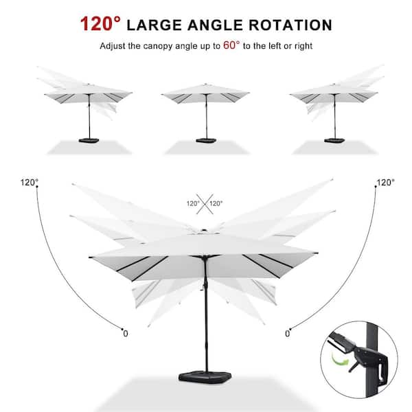 10 ft. Square Cantilever Umbrella Solar Powered LED Swivel Aluminum Offset 360° Rotation Patio Umbrella in White