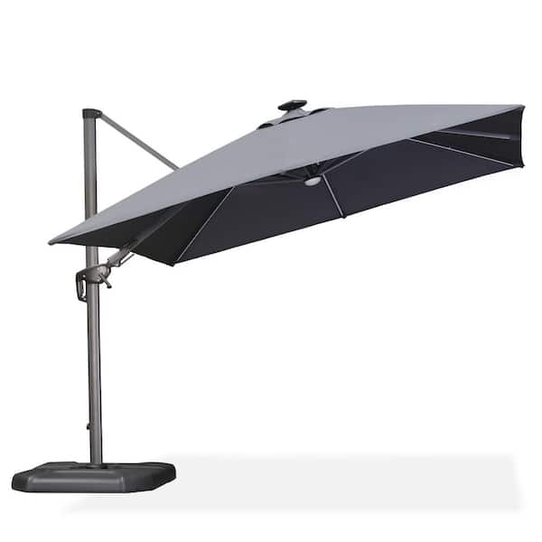 10 ft. Square Cantilever Umbrella Solar Powered LED Swivel Aluminum Offset 360° Rotation Umbrella in Gray